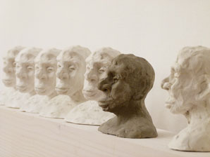 7 Gipsköpfe und ein Betonkopf